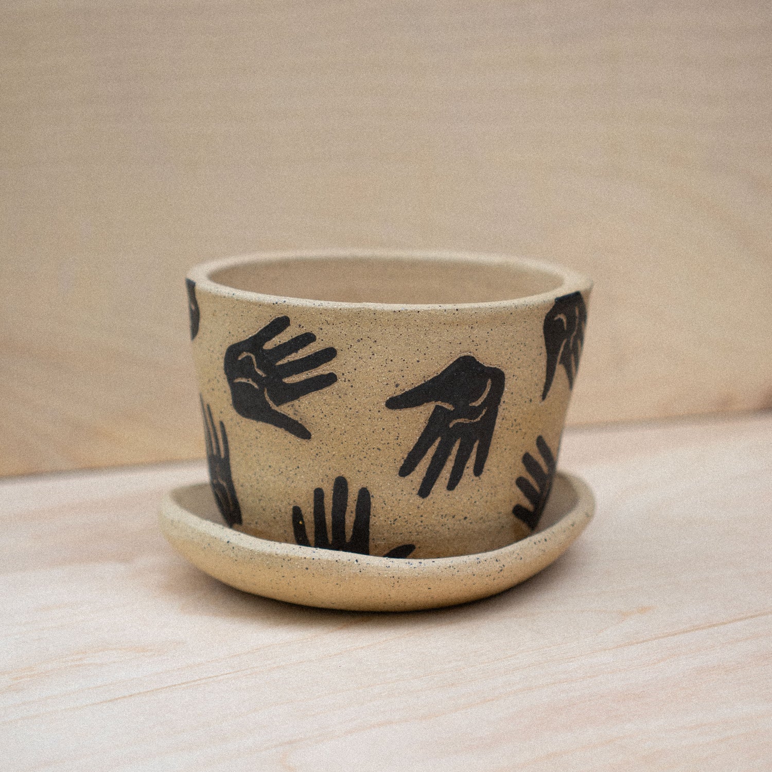 Wheel-thrown planter made from speckled stoneware and hand painted with underglaze. My favorite shape to throw and my favorite pattern to paint. ☻